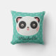O travesseiro personalizado do urso de panda bolinhas bonitos com sala para o nome de uma criança tem o fundo da cerceta.