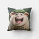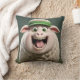 Travesseiro de porcos com um porco engraçado impresso como design para diversão. Travesseiro decorativo verde de fundo.