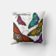 Borboletas coloridas design sobre um fundo branco com a palavra "Papillion" em escrita negra que significa "borboleta".
