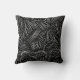 Travesseiro moderno e elegante com padrão de linhas curvas brancas em fundo preto.