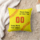 Travesseiro preto e alaranjado do softball, personalizado com seu nome da equipe, número do jérsei, nome dos jogadores de softball ou SEU TEXTO e suas CORES. Desenhista Linda da CHAMADA: 239-949-9090 para mudar o alaranjado e preto ou o amarelo, o texto, o fundo e os pontos alaranjados do softball. Você, pode MUDAR as CORES do texto e do fundo.