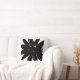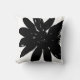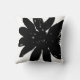 Este travesseiro tem um abstrato preto e branco de uma flor em ambos os lados.
