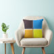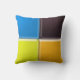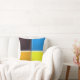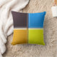 Quadrados com um aspecto biselado 3D, em laranja, amarelo, azul e preto, encontram-se no centro do travesseiro. O lado inverso mostra as mesmas cores em posições alteradas para corresponder às cores da frente nos lados.