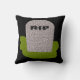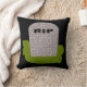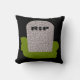 Este travesseiro incrível apresenta uma tombstone de cinza com RIP ao pingar texto preto nele, em pé sobre um pedaço de grama verde. Ao lado dessa design mórbida, o fundo é preto.