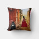 Travesseiro com uma pintura de uma senhora em vermelho em uma vila italiana romântica com um grande gato de smoking :-) Purefeito para uma senhora de gato maluco que ama a Itália.