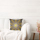 Este travesseiro apresenta um design dourado, amarelo e cinza de rajada. Mesma imagem em ambos os lados.