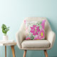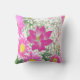 Um travesseiro romântico que combina com as suas cortinas cor-de-rosa e as flores cor-de-rosa estofando um lótus cor-de-rosa no centro Tema floral rosa que contrasta com o azul