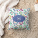 Um elegante e elegante e colorido, cor-de-rosa, ponto verde-turquesa, forma de flor travesseiro com monograma para personalizar com o seu começo.