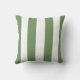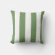 Este travesseiro verde-oliva e listrado branco tem uma estética de cabana moderna.