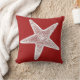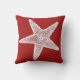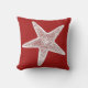 Um travesseiro do divertimento que diga "a casa de praia náutica clássica". Este travesseiro litoral simples do estilo apresenta uma ilustração lindo do vintage de uma estrela do mar no branco contra um fundo vermelho.