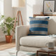 Travesseiros reais e prateados riscados para um lar moderno sofisticado e na moda. As listras azuis regais estão lindamente sincronizadas com a impressão de faixa de cinza prateada.