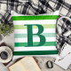 Listras em diferentes formas de verde. Com monograma personalizado travesseiro decorativo em cores frescas. Trendy Home Decor para a sua sala.