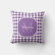 Faça uma abertura com este travesseiro decorativo quadrado de padrão de azulejo monograma controlado com diâmetros geométricos brancos roxos e frontais. Personalize este design de na moda adicionando seu nome e monograma inicial.