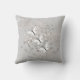 travesseiro decorativo bonito com o meu design vetor de três borboletas brancas e pretas voando sobre bolhas de cinza e brancas com toques de pêssego, em um fundo de cinza.