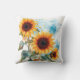 Três girassóis de aquarela são como o sol contra um céu azul vibrante.