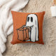 Travesseiro decorativo Laranja Glitter Quadrado Adorável com Falso Laranja Apresentando Truque ou Tratando Design Fantasma - Excelente para Decoração do Halloween!