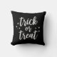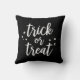 Celebre o Halloween em estilo com este travesseiro decorativo "truque ou trata" com modernas letras brancas e sotaques estrelados em fundo preto.