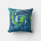 Um belo design de espiral azul e verde é apresentado neste travesseiro bonito, perfeito para o seu decoro doméstico.