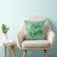 Lindo decoração doméstica (material interior ou exterior disponível) de um travesseiro de folha tropical em tons verdes.