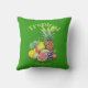 Pillow in a collage of colorful tropical fruits including pineapple, papaya, mango, gogi berries, kiwi, and lime, with a tropical theme of rich textures and lush foliage.