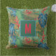 Suas flores tropicais iniciais e folhas no padrão de impressão de wicker tecidas fazem travesseiros de verão na moda ao ar livre. CORRESPONDENDO a itens na nossa loja.