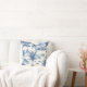 A imagem retrata um padrão clássico de mosaico de Jouy, caracterizado por cenas detalhadas em azul sobre fundo branco. Apresenta paisagens tropicais com palmeiras exuberantes, terreno rochoso e massas de água serenas. Há elementos como cabanas pequenas, pássaros em voo, e ilhas distantes, dando ao design uma sensação idílica e pacífica. O padrão é intrincado e evoca uma sensação de elegância pastoral tradicional muitas vezes associada às artes decorativas francesas.