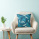 Adicione um toque de peixe a qualquer sala com este travesseiro de sotaque. Este travesseiro decorativo ou almofada apresenta ilustrações simples de peixes de truta em marfim, azul-lacrimogêneo e azul-marinho contra um fundo azul legal. Um padrão não direcional de peixes nadadores. Com sua paleta de cor azul e marfim e gráficos de truta, esta impressão de pesca é perfeita para pescadores ou para decorar sua casa no lago.