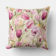Esta almofada de arremesso de destaque é mostrada com uma linda estampa de tulipas rosa.