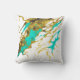 Almofada Turquesa e Dourada Tinta Álcool Marmoreada