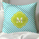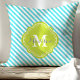 Almofada Decorativa Turquesa e Listras Verdes Monogramada da Moda. Apresentando uma moldura de monograma em trevofoi fofo e elegante. Clique em "personalizar" para personalizar com seu próprio nome e iniciais.
