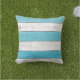 Esta almofada bonita ao ar livre é branca e turquesa listrada e tem uma placa de praia de madeira, fazer uma casa de praia excelente, casa de piscina, casa de campo, baralho, pátio ou acessório ao lado da vara.