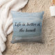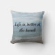 Almofada Turquesa oceano, praia arenosa com texto