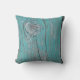 Um travesseiro ao ar livre com um impressão de grão de madeira e nós de madeira em turquesa.