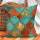 Melhore sua decoração com este travesseiro decorativo de papel quatrefoil marroquino com uma mistura impressionante de turquesa, laranja queimada, ferrugem e ouro ocre. O acabamento angustiado dá-lhe uma aparência vintage, meteorológica, enquanto o padrão geométrico ousado adiciona um encanto inspirado no mundo. Perfeito para salas de estar, quartos ou assentos ao ar livre, esta almofada decorativa traz calor, textura e cor para espaços de primavera e verão.