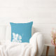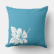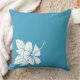 Uma silhueta branca de uma flor de hibisco é o destaque deste travesseiro decorativo azul brilhante.
