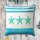 Almofada Turquoise green 3 starfish, ano da praia, negrito