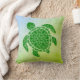 Silhueta de tartaruga verde com ilustração no estilo mandala em branco. Fundo de cor azul e verde da água