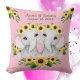 Se você conhece alguém recentemente abençoado com meninas gêmeas doces, eles vão amar esse travesseiro! Cada lado tem uma imagem de elefantes bebê idênticos com adorno de girassol. Os girassóis também estão nos cantos superiores e nos pés dos elefantes. Um lado do travesseiro tem os nomes dos bebês e sua data de nascimento. O outro lado tem outro campo de texto personalizado. Tudo é colocado sobre um fundo cor-de-rosa. Adorável!