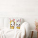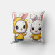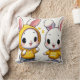 Travesseiro decorativo branco com um design bonito de dois coelhinhos alegres.