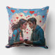 Este é um travesseiro decorativo original da Habatour Creations, embelezado com uma autêntica ilustração artística, apresentando um casal, comunicando via celular, com corações voando ao seu redor Copyright de @Habatour Creations Copy ou use sem permissão é ilegal