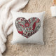 Design vermelho, preto e branco com coração gráfico.