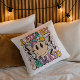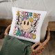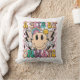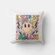 Um Travesseiro decorativo de Typografia Um Pouco Dramático Engraçado, Dizendo Pipografia, apresenta o texto "Um Pouco Dramático" na tipografia moderna num fundo cor-de-rosa de pranchas de xadrez com flores ranhosas, parafusos de relâmpago e uma face sorridente. Projetado pelo Evco Studio www.zazzle.com/store/evcostudio