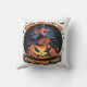 Almofada Uma bruxa ponderando sobre uma abóbora