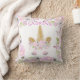 Travesseiro de decoração do Buquê Floral de Peony Rosa de Cor Rosa Unicorn - Design por ©WhimsicalArtwork™ - Rosto unicórnio Adorável com sombra de olhos rosa pincelada e adornada e adornada com peônias, anêmonas, freesias e verde cor-de-rosa - Parte de uma coleção de decoração Mix e Match, bem como material de festa .