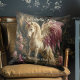 Amante de Cavalos Perfeito Decoração de Quarto de Adolescente ou Berçário. Esta Almofada de Arremesso de unicórnio alado rosa apresenta um estilo de pintura clássica com uma clareira mágica na floresta e orquídeas rosa em primeiro plano. Um castelo de contos de fadas completa a cena encantadora, tornando-a uma peça ideal para decoração de adolescente com tema de unicórnio ou cobertor de berçário aspiracional. Adicione um nome e texto como "Deixe a Magia Guiar Você" para um presente atencioso e atemporal. Entre em contato comigo se precisar de ajuda com personalização.