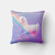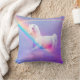 Unicórnio branco, arco-íris e céu roxo com nuvens cor-de-rosa.
