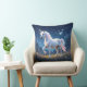 Adicione um toque mágico à decoração domiciliar com este travesseiro decorativo, que apresenta um unicórnio branco num prado de flor selvagem numa noite estrelada. O reverso mostra design idêntico. Design © W.H. Sim. Mais informações em zazzle.com/word2art
