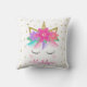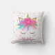 Este travesseiro personalizado de unicórnio apresenta um lindo e branco design de rosto de unicórnio arco-íris com flores, estrelas e falsa brilho dourado. É um design de dois lados. Personalize-o com um nome.