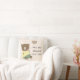 Ilustração de urso doce sobre a almofada bege personalizada com o nome do seu bebê e estatísticas de natalidade.