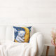 Travesseiro decorativo macio com um urso de pelúcia dormindo enrolado numa lua crescente contra um fundo noturno estrelado, perfeito para decoração de berçário, quartos de bebês, roupa de cama infantil, presentes e cenas de sono aconchegantes.